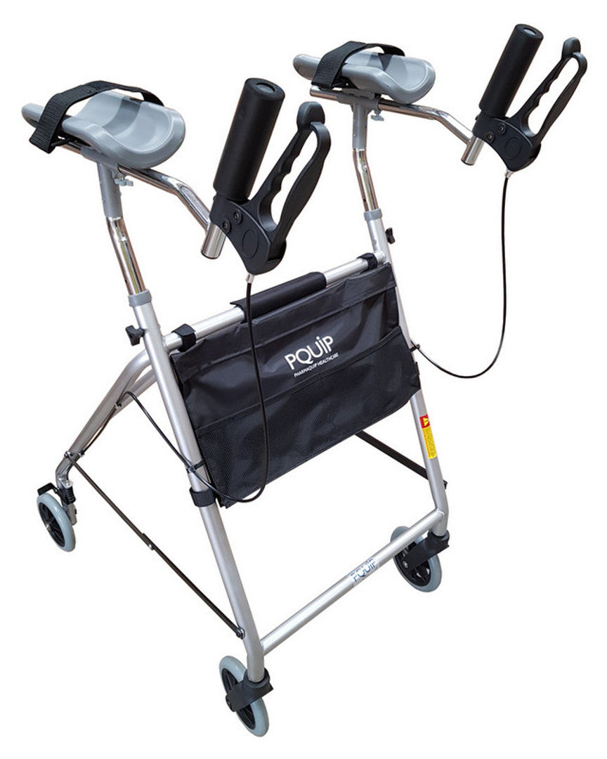 The Gutter Arm Walker is designed to support the user in an upright position to assist with mobility and rehabilitation.