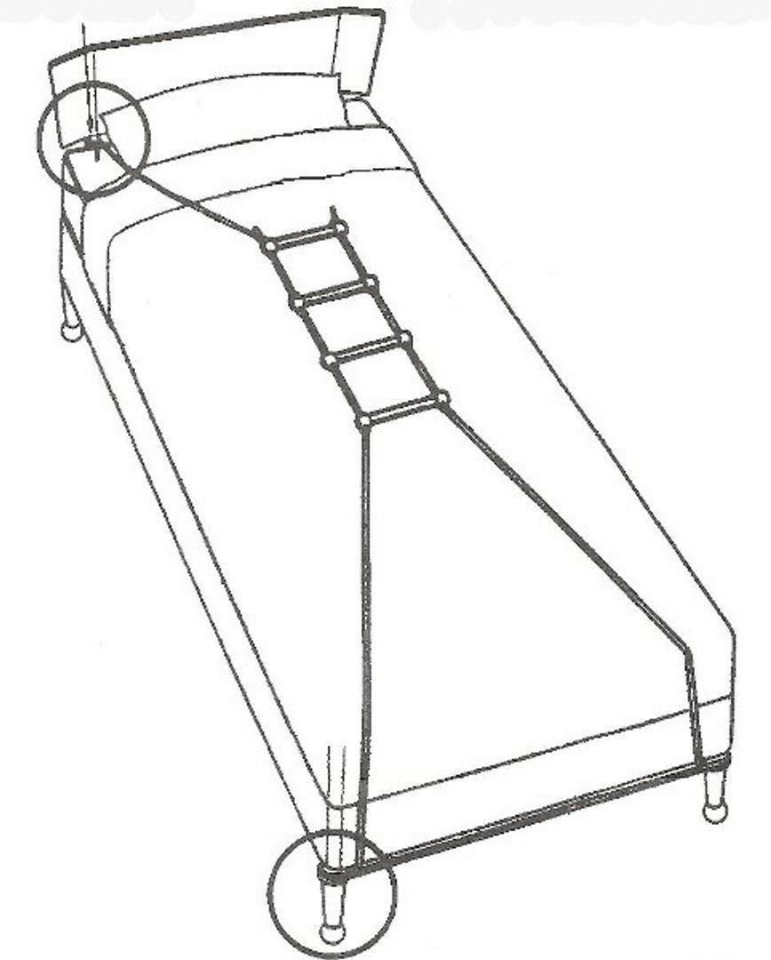 - The bed ladder has a continuous loop nylon cord, and is secured by wrapping the cord around the legs of the bed.
