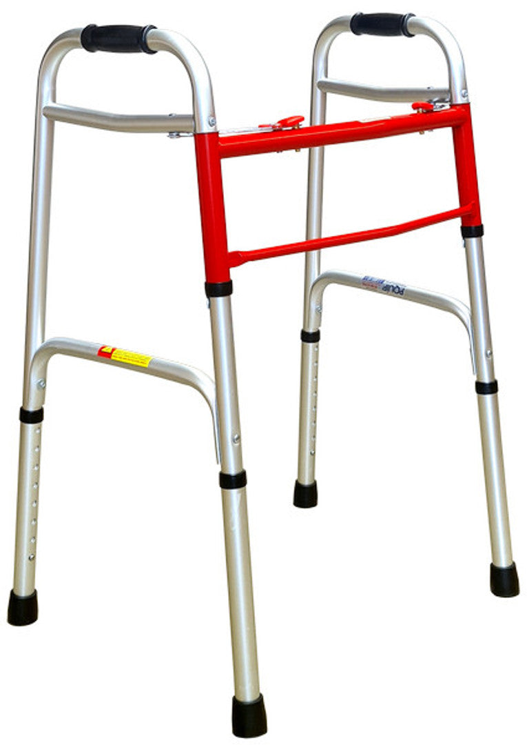 Lightweight, foldable aluminium walker with 136kg capacity, height adjustability, easy-press buttons, durable grips, and reinforced support for daily use.