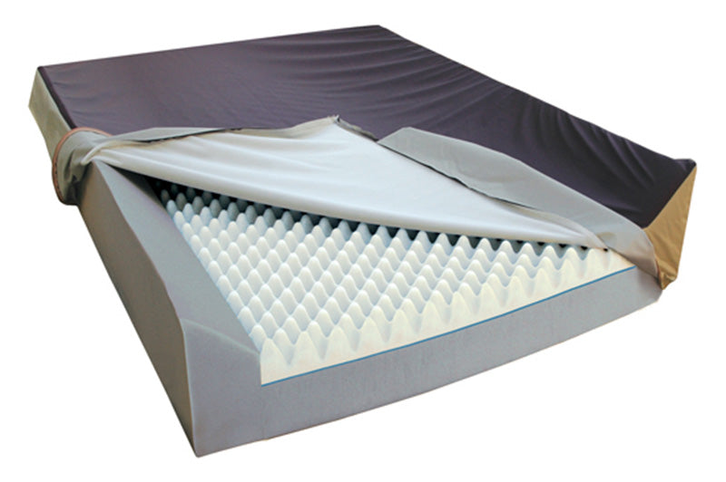 - 2-layer dual density foam core, convoluted upper and supportive base with concave sides