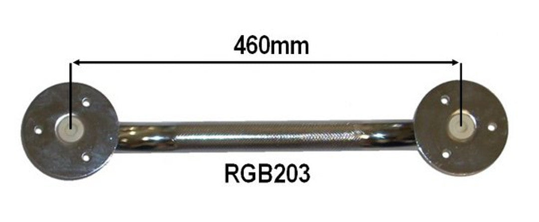 Textured grab bar which helps provide safety when getting into or out of the bathtub or assistance when using the toilet.