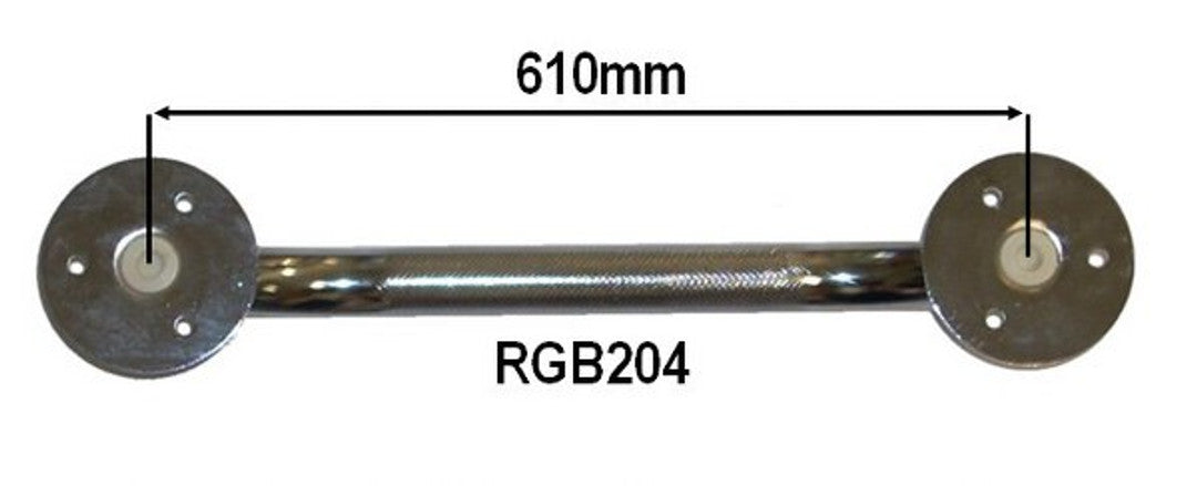 Textured grab bar which helps provide safety when getting into or out of the bathtub or assistance when using the toilet.