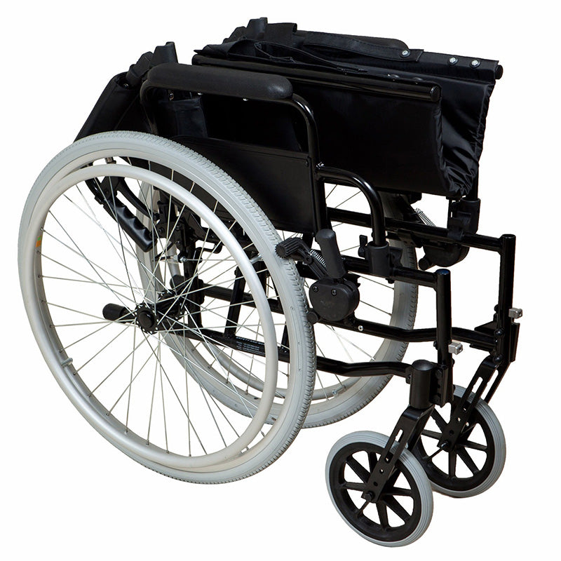 An ideal lightweight wheelchair with a fold down backrest to make transport easier.