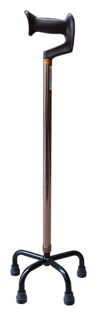 The Small Base Sure Step Quad Cane provides additional stability and support with a four point cane base.