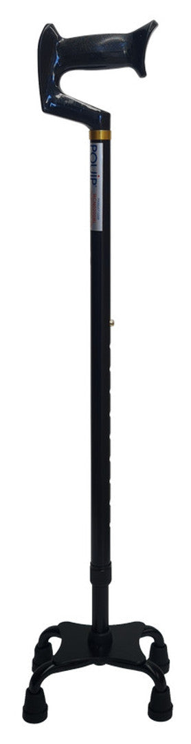 The Small Base Sure Step Quad Cane provides additional stability and support with a four point cane base.