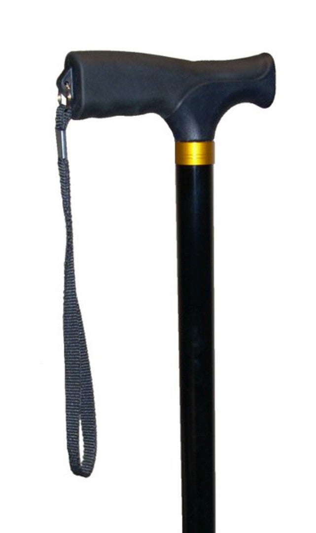 Aluminium T Shape Handle Cane with a push button height adjustment and are supplied with a soft grip, long lasting thermal plastic rubber handle.