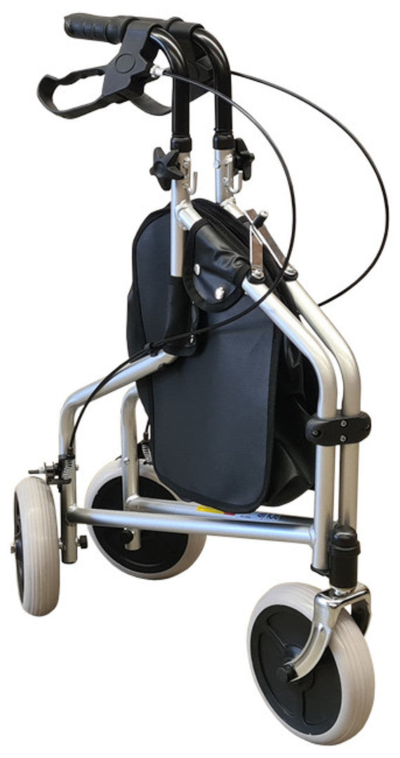 Great for manoeuvring in tight spaces as the three wheel design has a smaller footprint and turning circle than traditional 4 wheel rollators.