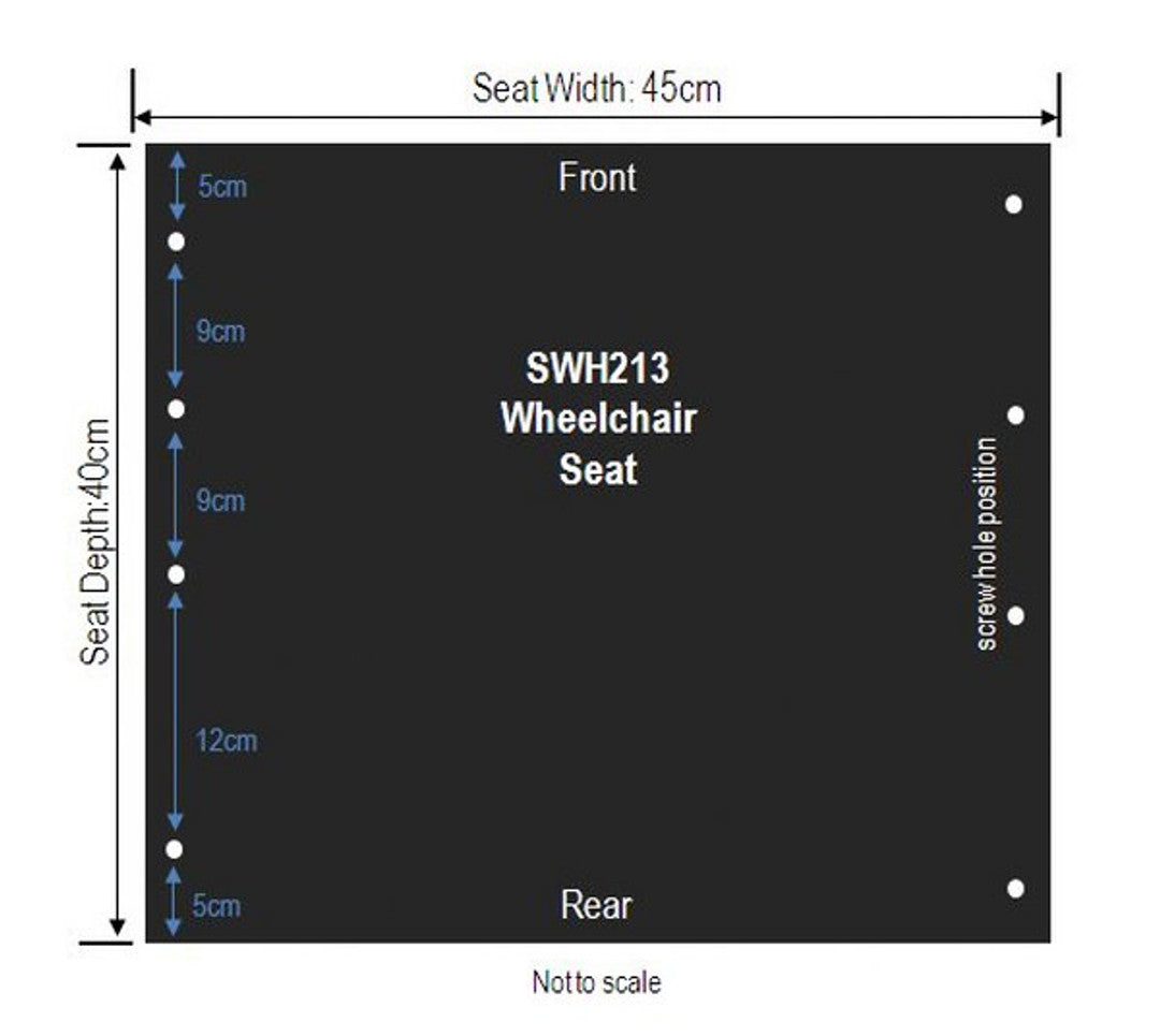 Black Vinyl Wheelchair seat which is 45cm wide and 40cm deep.